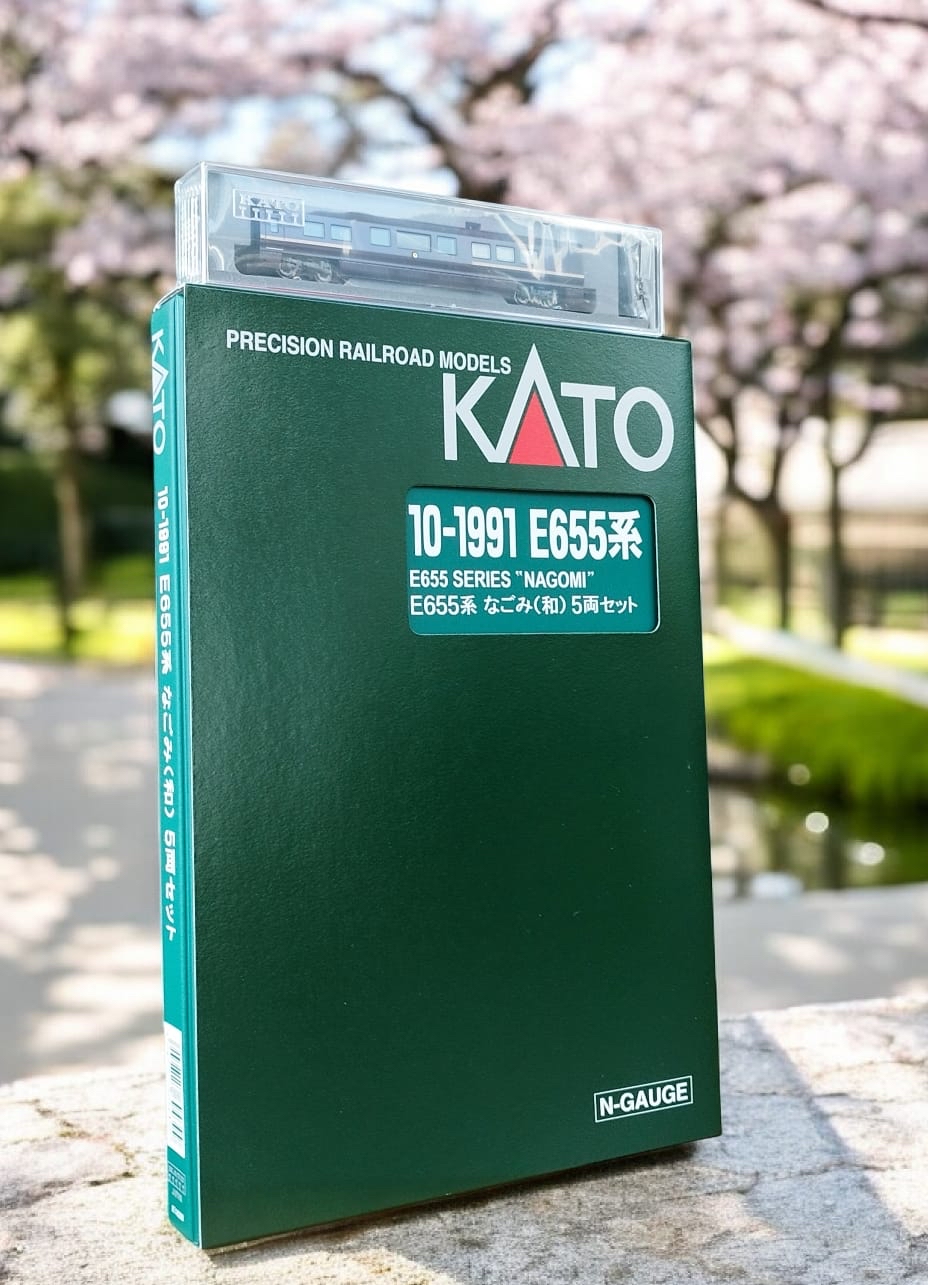 KATO E655系 是一套5節車廂+禦用特別車廂的N規「和見」(日式)模型火車, 全編共6節。這款模型以其優雅的設計和作為日本皇室列車的用途而聞名。它是一款高度精細的塑膠模型,可在標準的N比例軌道上行。