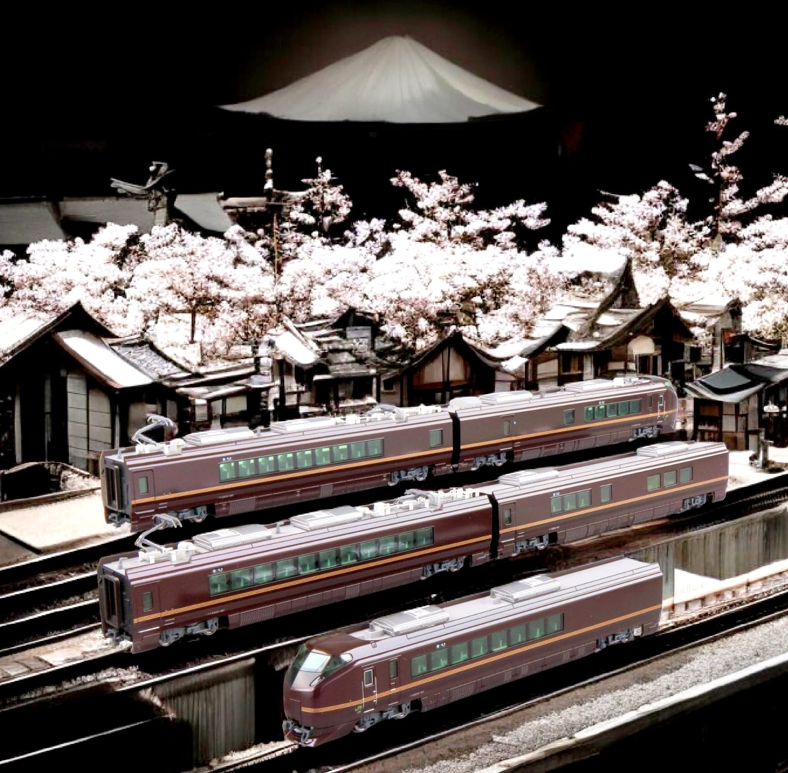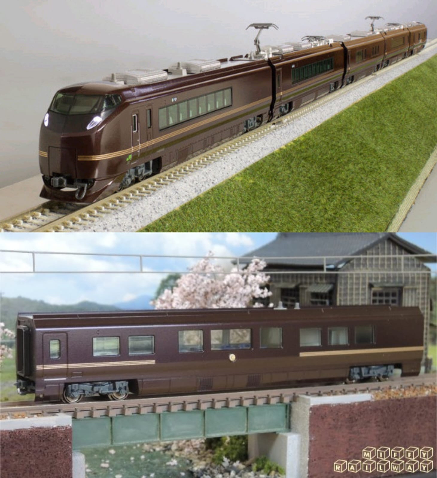 列車模型由全綠色的日式「高級」車廂組成,擁有兼具銳利感和穩重感的獨特造型。車身顏色會隨著光線變化而由紫色變為棕色,賦予列車一種沉穩優雅的氣質。