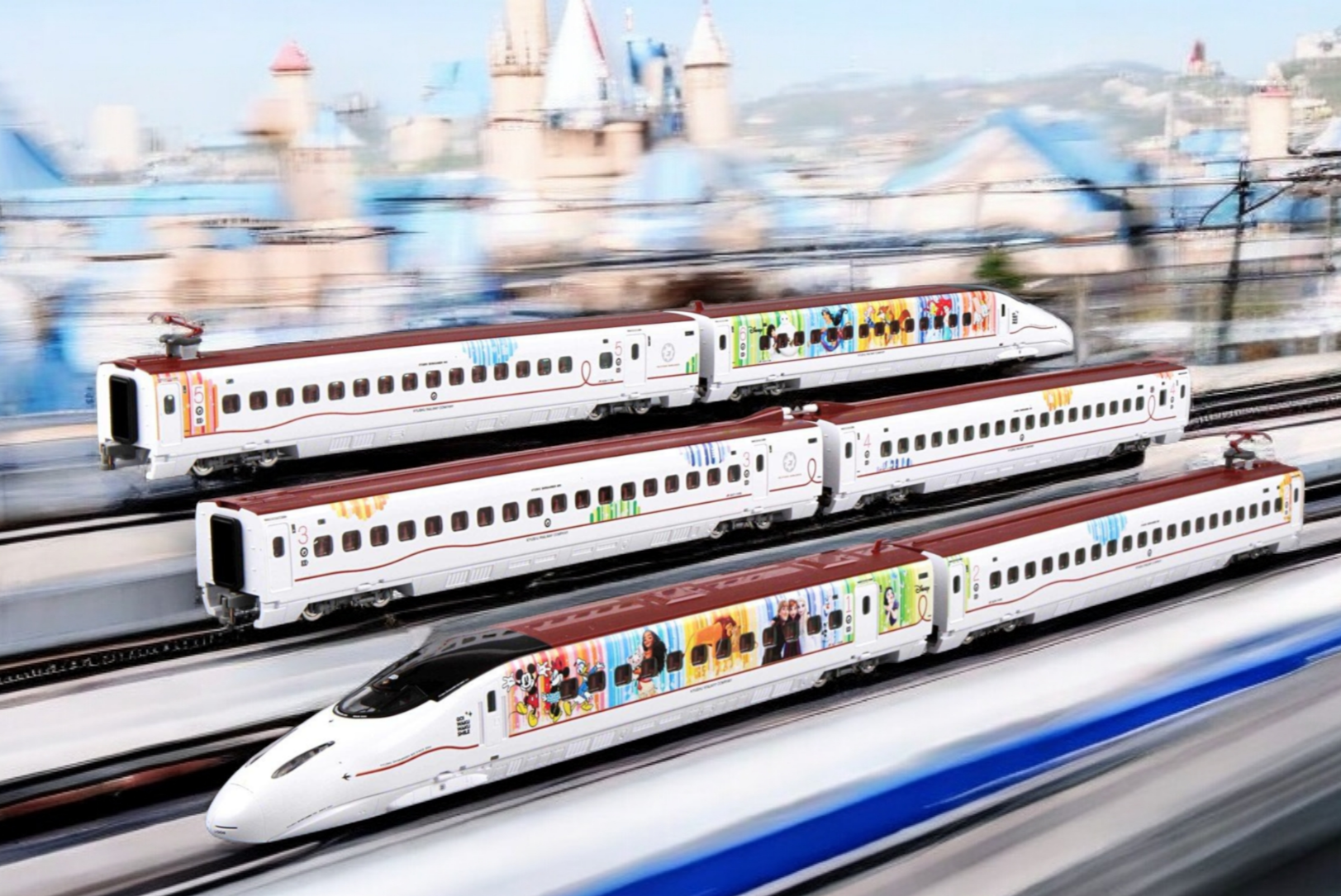 九州新幹線800 1000系(JR九州 WAKU WAKU SMILE 新幹線) JR九州新幹線列車「GO! WAKU WAKU SMILE」主題是超歡樂的迪士尼彩繪列車,車身集結了獅子王、冰雪奇緣、小美人魚、奇奇蒂蒂、史迪奇等動畫裝飾,車內也會播放主題音樂,以鮮活色彩、旋律為乘客創造獨一無二的新幹線「微笑」之旅!