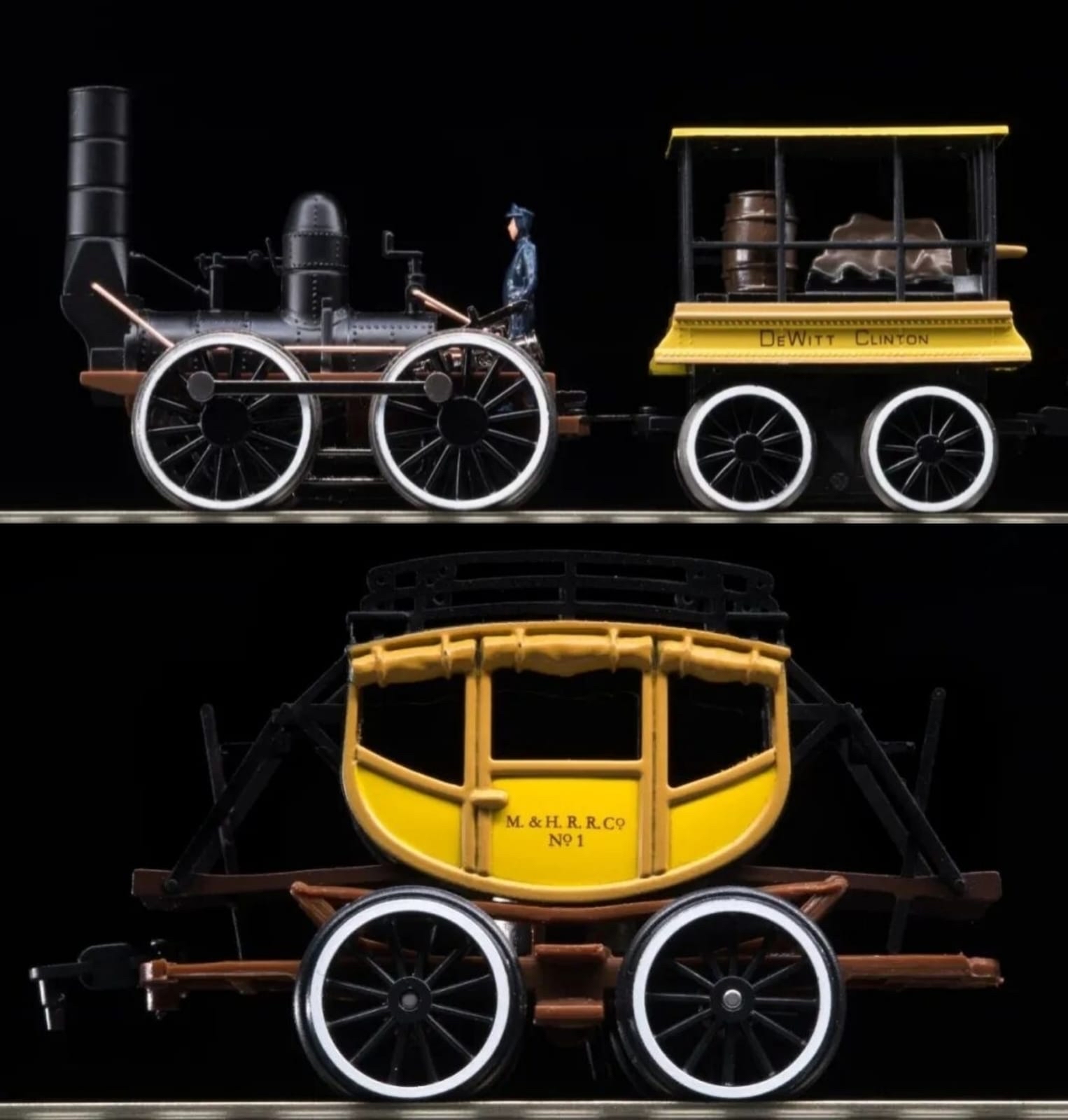 「德威特·克林頓號」由莫霍克與哈德遜鐵路公司(Mohawk and Hudson Railroad)於1831年製造,是紐約州歷史上首台投入服務的蒸汽機車,也是美國鐵路史上的里程碑之作。 該機車以紐約州前州長德威特·克林頓(Diwitt Clinton)命名,以致敬其在建造伊利運河方面的巨大貢獻——而正是鐵路的崛起,最終成為伊利運河的競爭者。 機車部分組件由冷泉市的西點鑄造廠鑄造,其首次運行路線為奧爾巴尼至斯克內克塔迪(約26–27公里),客車則由馬車車體改造而成,乘客可乘坐內座或戶外座椅。 這些車廂被稱為“古爾德車”,由當地著名馬車匠詹姆斯·古爾德設計打造。 初次測試使用了拉克瓦納煤,但因熱效不足,時速僅達11公里。 鐵路公司隨即改用焦炭作為燃料,在隨後的測試中成功提速至16公里。 1831年8月9日,「德威特·克林頓號」完成了首次載客運行,在三節古爾德車廂的配合下,僅耗時38分鐘便跑完全程,平均時速達40–43公里,遠超伊利運河舟行所需數小時的時間。 這標誌著鐵路運輸效率大幅提升,並成為未來鐵路發展的起點。 一位當時的目擊者曾如此生動地描述這段旅程:「這輛名為德威特·克林頓的機車已在軌道上點火啟動,後方連接著五六節客車。它的起步並非悄無聲息,而是猛然一震,將乘客從座位上顛了起來,有些人甚至趕緊抓緊抓緊抓撓 住了帽子。 德威特·克林頓號採用了當時先進的設計,配備有鍋爐火管、水平鍋爐和兩個傾斜汽缸,驅動四個由外部連桿連接的鐵輪。 它沒有鈴鐺、汽笛、前燈、導輪,甚至沒有駕駛室。 車廂則是將傳統的康科德馬車車身安裝在鐵路底盤和車輪上。 儘管整車在未加水時僅重約3.5噸,但德威特·克林頓號標誌著美國鐵路運輸新時代的開啟,極大地推動了交通方式的變革,也逐步取代了以運河為主的傳統運輸方式。 克林頓號原型車僅服役2–3年,便於1833年退役拆除。 然而,其影響深遠。 1893年紐約中央鐵路(NYCR)在芝加哥哥倫比亞博覽會上復刻了這台機車,並復原了原始的古爾德車廂。 此次展覽旨在紀念哥倫布1492年發現美洲400週年,復刻版成為展會上的重要亮點。 此後,「德威特·克林頓號」複製品及古爾德車廂的複製品便在密西根州迪爾伯恩的亨利·福特博物館長期展出。 作為Bachmanm Trains™️鐵路發展200年的經典回顧復刻作品,此次對克林頓號也採用了新工藝進行技術改良並再版這款HO比例模型將這段鐵路傳奇復刻,不僅承載歷史記憶,也反映了人類機械工藝的發展與文化變遷。 本產品以克林頓列車為模型原型,致力於還原19世紀鐵路黃金時代的風采,讓每位收藏者都能親手觸摸工業革命的脈搏,借德威特.克林頓號列車來紀念這段激動人心的鐵路文化遺產。 採用新版技術後,此HO版(1:87)車型克服了因車體過於小巧而帶來的壓重困難造成摩擦力不夠的原缺憾,新版克林頓號列車有著極為出色的跑車性能。 Diwitt Clinton列車還有以下特色: ●·德威特·克林頓 0-4-0 蒸汽機車,附司機人偶 ● 煤水車,載有木材和水桶 ●三節原型馬車式客車 ● 運轉平穩的斜繞電機 ● 機車和煤水車採用鎳合金車輪 現貨上市